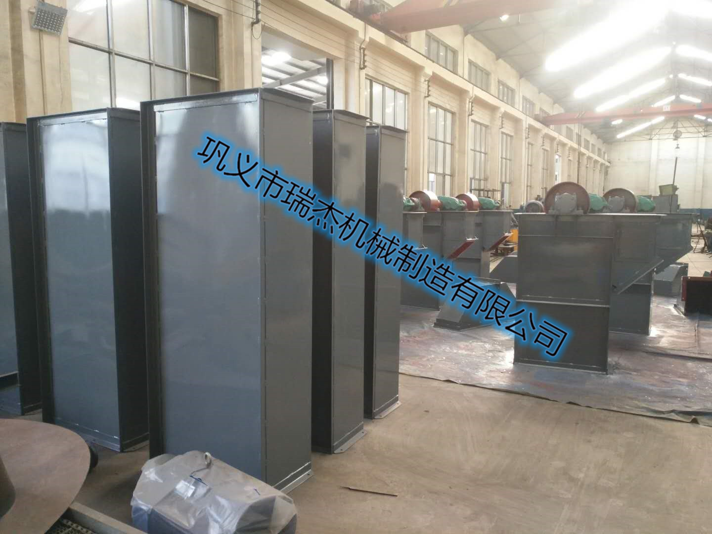 料斗把物料從下面的儲(chǔ)藏中舀起,隨著輸送帶或鏈提升到頂部,繞過頂輪后向下翻轉(zhuǎn), 斗式提升機(jī)將物料傾入接受 槽內(nèi)。帶傳動(dòng)的斗式提升機(jī)的傳動(dòng)帶一般采用橡膠帶,裝在下或上面的傳動(dòng)滾筒和上下面的改向滾筒上。鏈傳動(dòng)的斗 式提升機(jī)一般裝有兩條平行的傳動(dòng)鏈,上或下面有一對(duì)傳動(dòng)鏈輪,下或上面是一對(duì)改向鏈輪。斗式提升機(jī)一般都裝有 機(jī)殼,以防止斗式提升機(jī)中粉塵飛揚(yáng)。
