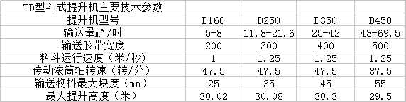 TD、D型斗式提升機(jī)適用于垂直輸送粉狀、粒狀、及小塊狀的磨吸性較小的散狀物料,如糧食、煤、水泥、碎礦石等,提升高度最高40m,其特點(diǎn)為:結(jié)構(gòu)簡單,運(yùn)行平穩(wěn),挖取式裝料,離心重力式卸料,物料溫度不超過60。C。TD型按JB3926-85《垂直斗式提升機(jī)》標(biāo)準(zhǔn)設(shè)計(jì)制造,與傳統(tǒng)D型斗提機(jī)相比,輸送效率高,料斗形式多,應(yīng)優(yōu)先選用。您可以根據(jù)您的產(chǎn)量的大小選著合適的機(jī)型。